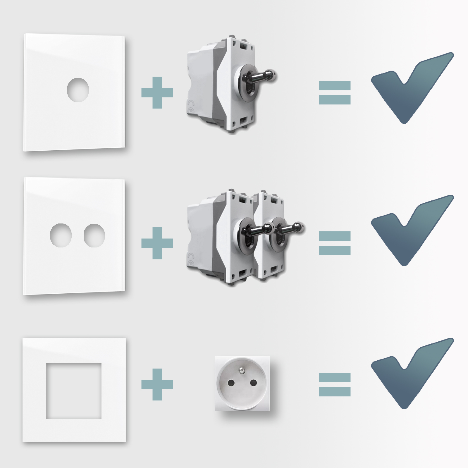 Dans quelques années, vous souhaiterez peut-être des interrupteurs d'une autre couleur ? Dans ce cas, il vous suffit de conserver la technique installée et de commander le panneau frontal dans la nouvelle couleur souhaitée. Vous pouvez facilement remplacer les plaques frontales, même si vous n'êtes pas électricien.