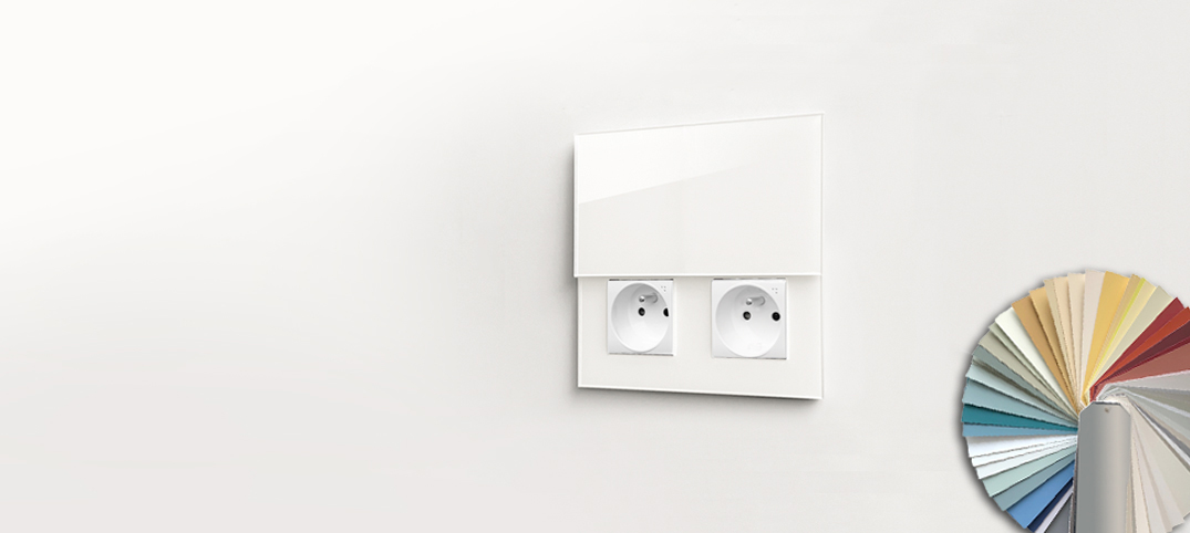 Facile à utiliser. Les prises en verre ne sont pas seulement belles, elles sont aussi pratiques. Les couvercles complets adhèrent magnétiquement et peuvent être simplement rangés sur le côté du cadre dès que la prise est utilisée.