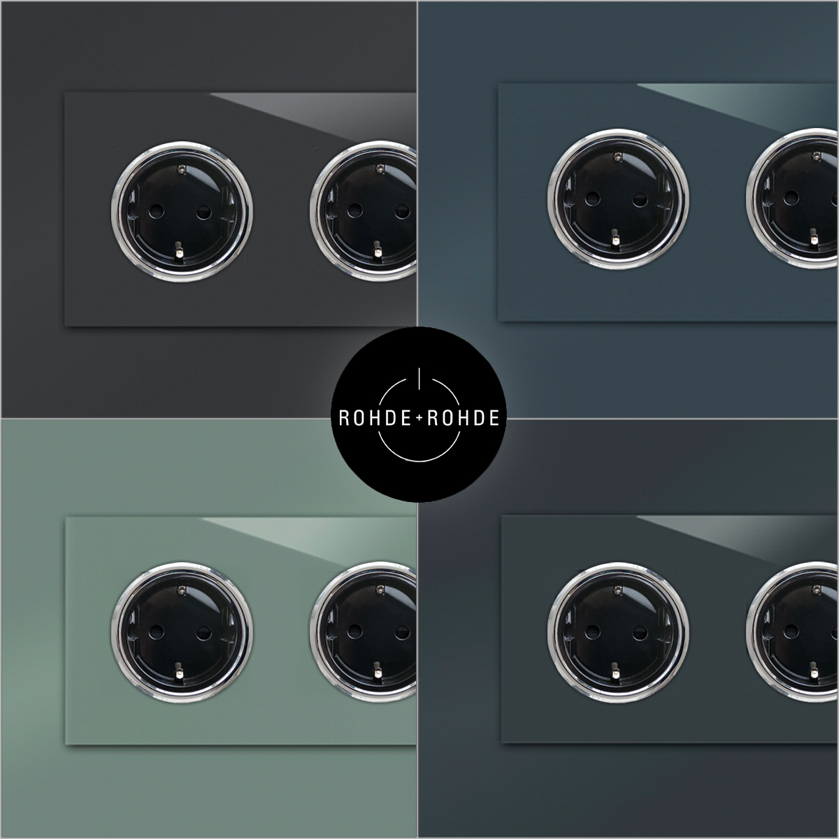 PRESE ELETTRICHE NEI COLORI DI FARROW & BALL: Prese di design nei colori originali di Farrow & Ball, realizzate in Germania dal rinomato produttore ROHDE+ROHDE. Scegli il tuo colore preferito tra oltre 130 tonalità originali di Farrow & Ball, che verranno laccate dietro il vetro nel nostro laboratorio. Suggerimento: Interruttori e prese della stessa tonalità delle pareti circostanti creano un aspetto complessivo molto armonioso.